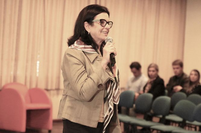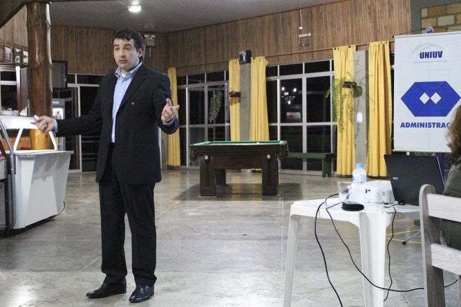 A palestra de ontem (10), teve como convidada Angela Amin, doutora em Gestão Pública. O convite à palestrante foi feito pelo acadêmico Ruan Wolf, que após meses de conversa, conseguiu marcar uma data para o bate papo com os alunos de Administração.