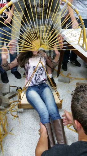 Segundo o acadêmico Renato Stavis, o motivo da escolha do material se deve à similaridade de comportamento que o macarrão seco oferece, proporcionalmente, em relação ao aço. “O professor Moretto nos explicou que, no Japão, por exemplo, onde há grandes terremotos, usa-se macarrão para a construção de protótipos para testes e simulações. Por este motivo, no mundo inteiro universidades de Engenharia Civil promovem competições de pontes de macarrão entre os acadêmicos”, conta.