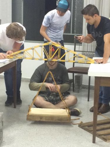 Durante a última semana de aulas do Centro Universitário de União da Vitória (UNIUV), o professor Felipe Moretto do curso de Engenharia Civil, realizou com os acadêmicos a competição de pontes de macarrão, que faz parte da avaliação da disciplina de Análise Estática de Estruturas II.