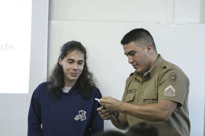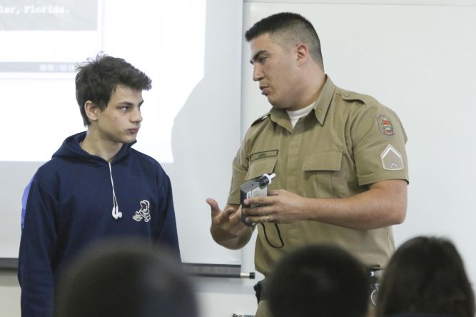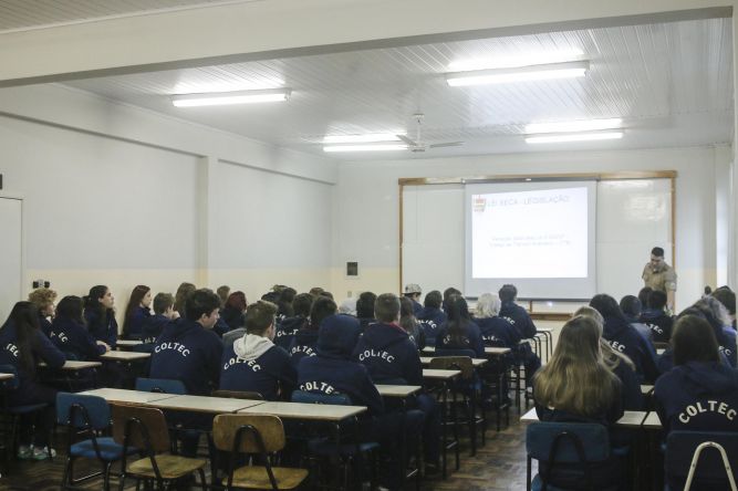 Os alunos do terceiro ano do Colégio Técnico de União da Vitória (Coltec) participaram na manhã de hoje (18), de uma palestra sobre Álcool e Direção ministrada pelos policiais militares de Porto União, Rodrigo Leal e Ricardo Pereira.