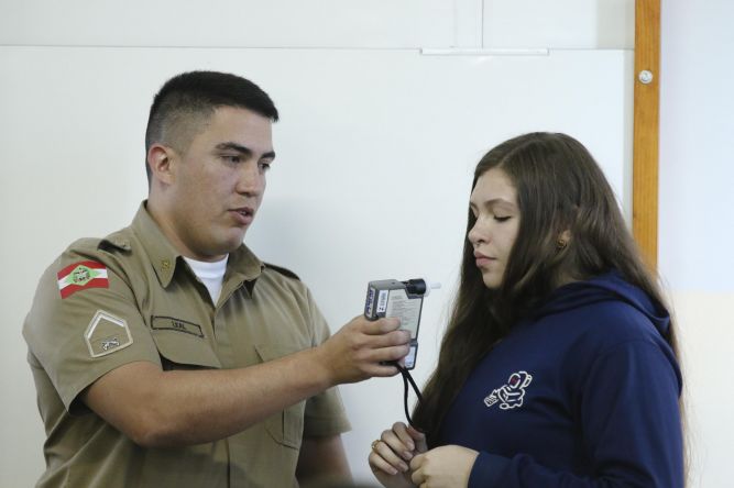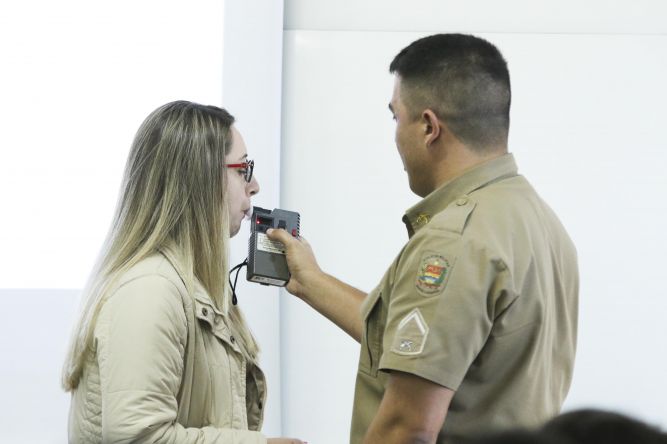 Os alunos ainda participaram de testes do bafômetro com chocolates recheados com licor e bochecho com enxaguante bucal. O policial Pereira também fez o teste com graspa, para exemplificar a quantidade de álcool no sangue. Nos exemplos pode-se perceber que após ingerir os produtos, a quantidade de miligramas varia de acordo com o metabolismo. Ao fazer o reteste, nos casos do chocolate e enxaguante bucal , após 15 minutos o corpo já tinha absorvido a quantidade de álcool, enquanto a graspa ainda permanecia presente.
