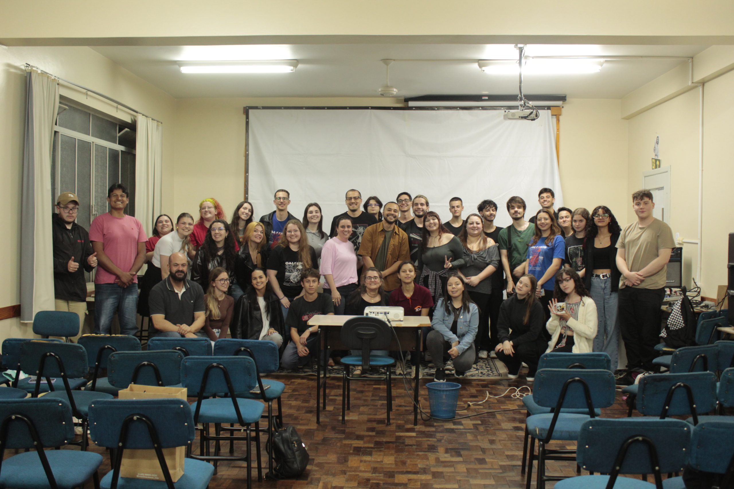 No primeiro dia, os estudantes assistiram ao filme O Diabo do Baile, seguido de um bate-papo inspirador com os produtores Ivan C. Tracz e Rafael Zipperer Ribas, da Moca Audiovisual, ambos egressos de PP/Uniuv.