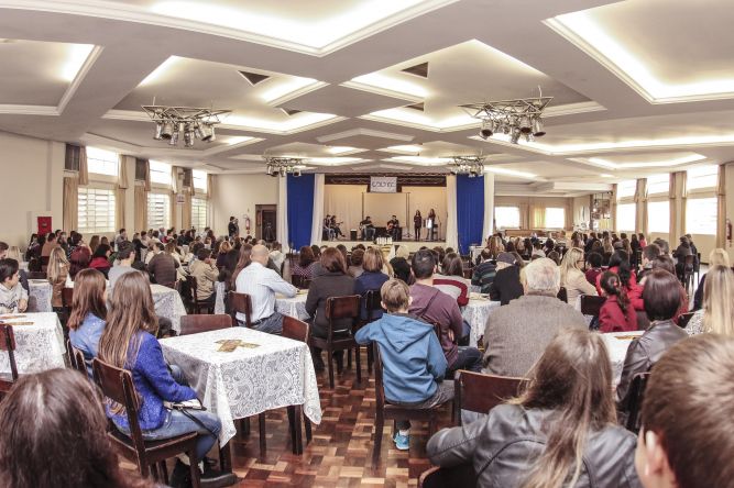 O evento que acontecia no piso superior da biblioteca do Centro Universitário de União da Vitória (UNIUV) foi realizado nesse ano no Clube 25 de Julho, para melhor acomodar os pais, avós, tios, irmãos dos alunos do colégio.