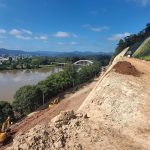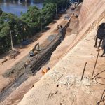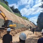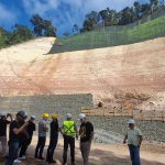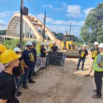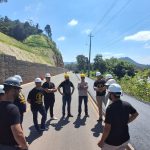 Durante a visita, observaram de perto o corte em rocha e suas características geológicas, a instalação de telas de contenção para hidrossemeadura, a construção de muro de gabião e drenagem, além da aplicação de CBUQ na ciclovia nas áreas já concluídas.