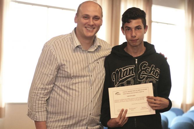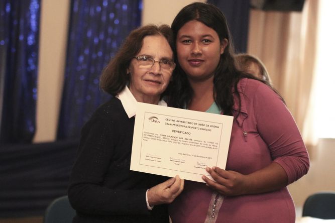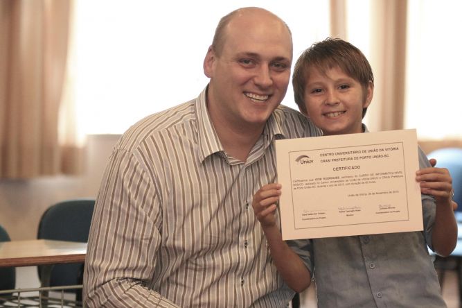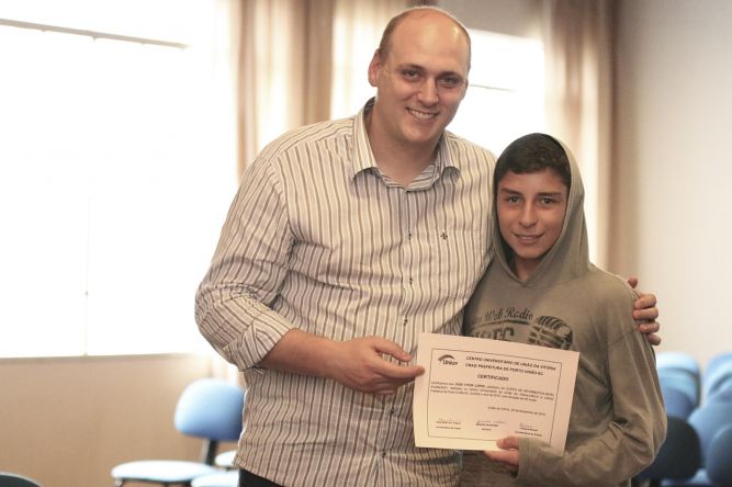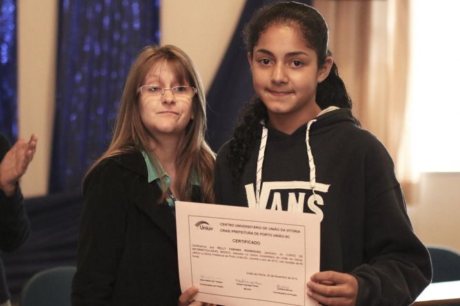 Foi realizada hoje (04), a formatura dos alunos do projeto de inclusão digital, uma parceria entre a Prefeitura de Porto União e o Centro Universitário de União da Vitória (UNIUV), que oferece gratuitamente os cursos de informática básica, intermediária e avançada às crianças carentes dos conjuntos habitacionais São Bernardo do Campo, Porto União e São João Maria.