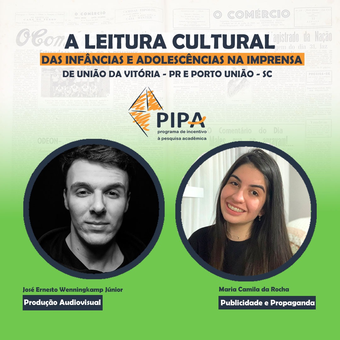 Sob a orientação da professora Angela Maria Farah, os acadêmicos da Uniuv, José Ernesto Wenningkamp Júnior (Produção Audiovisual) e Maria Camila Rocha (Publicidade e Propaganda), desenvolvem, desde o ano de 2019, o projeto de pesquisa: “A leitura cultural das infâncias e adolescências na imprensa de União da Vitória – PR e Porto União – SC”.