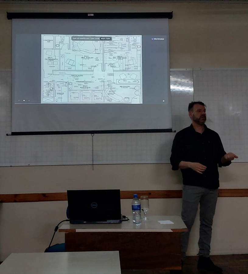 A palestra “Caminhos da Arquitetura: Desafios e Oportunidades”, apresentada por Paula Jobins, egressa do curso de Arquitetura e Urbanismo, abordou os desafios enfrentados pela arquitetura no contexto atual e as possibilidades de inovação e adaptação às novas demandas sociais e tecnológicas. Já a reflexão sobre “Criatividade Intuitiva em Tempos Digitais” foi o título da palestra de Murilo Kurten dos Passos, que destacou a importância da inovação e do uso de novas tecnologias no desenvolvimento de soluções arquitetônicas e de engenharia para os desafios contemporâneos.