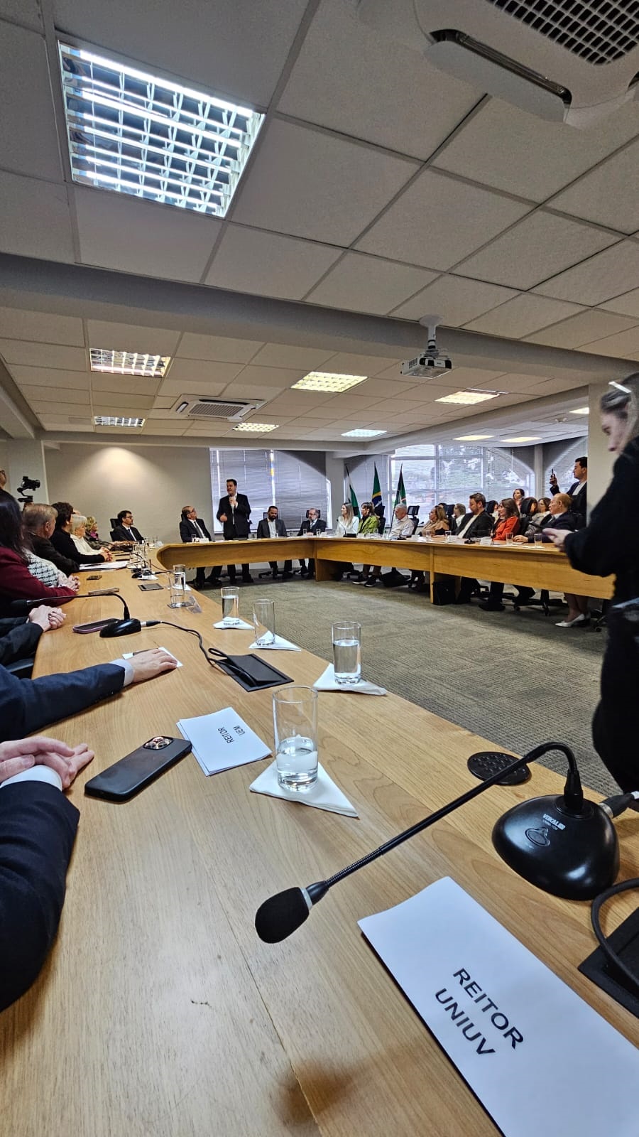 Representada pelo Reitor, Professor Lúcio Kürten dos Passos, a instituição participou da cerimônia de inauguração da nova sede do Conselho Estadual de Educação do Paraná (CEE-PR) em comemoração aos 60 anos do órgão máximo deliberativo da educação no Paraná. O evento contou com a presença de Secretários de Estado, Reitores e Diretores das instituições de ensino do sistema paranaense, considerado pelo Ministério da Educação (MEC) como referência nacional. “O Paraná foi reconhecido pelo Ministério da Educação como a melhor educação do Brasil e esse trabalho passa pelo Conselho Estadual de Educação, que está comemorando 60 anos em 2024”, comemora o Governador Carlos Massa Ratinho Júnior.
