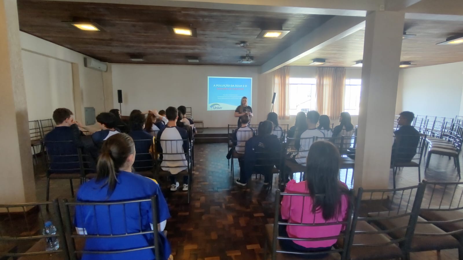 Nos dias 12 e 13 de setembro, o Centro Universitário de União da Vitória – Uniuv, recebeu estudantes do Ensino Médio do Colégio Sesc de União da Vitória – PR. No dia 12 foi ministrada uma palestra para os alunos do 2º ano pela professora Lisandra Kaminski Moreno, coordenadora do curso de Engenharia Ambiental, com o tema “Poluição da Água e o Descarte de Plásticos”. A palestra teve como objetivo abordar as causas e impactos decorrentes da poluição da água, especialmente relacionado ao descarte incorreto de plásticos no meio ambiente, bem como mencionar as ações importantes para redução e controle de tais impactos.
