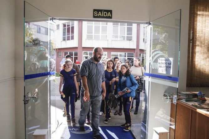 O Centro Universitário de União da Vitória (UNIUV) recebeu na tarde de ontem (16) a visita dos alunos dos 8º e 9º anos do Colégio Estadual Pedro Stelmachuk para que pudessem conhecer as instalações e os projetos desenvolvidos pela universidade. A visita faz parte do projeto UNIUV vai à Escola, que visa a integração entre a instituição e a comunidade escolar da região.